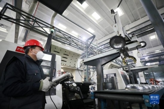 12月21日,在位于隆堯縣的河北遠(yuǎn)大閥門集團(tuán)有限公司鍛鋼高端定制車間,工人操控智能設(shè)備加工閥門產(chǎn)品。