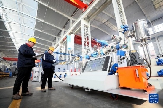 12月21日,在位于隆堯縣的河北遠(yuǎn)大閥門集團(tuán)有限公司大口徑車間,工人在查看智能調(diào)水設(shè)備運(yùn)行情況。