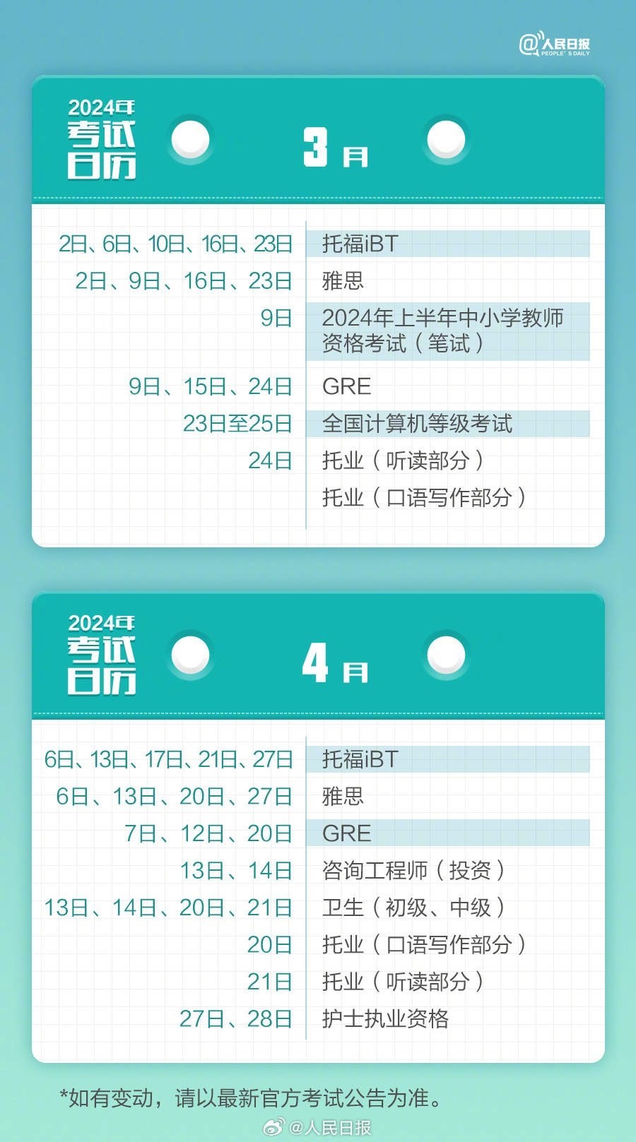 2024年已過去20多天,你的學習考試計劃開始了嗎?教師資格考試、計算機等級考試、注冊會計師、法律職業(yè)資格……提前計劃,不留遺憾,為目標努力起來!收好2024考試日歷↓↓一起加油!