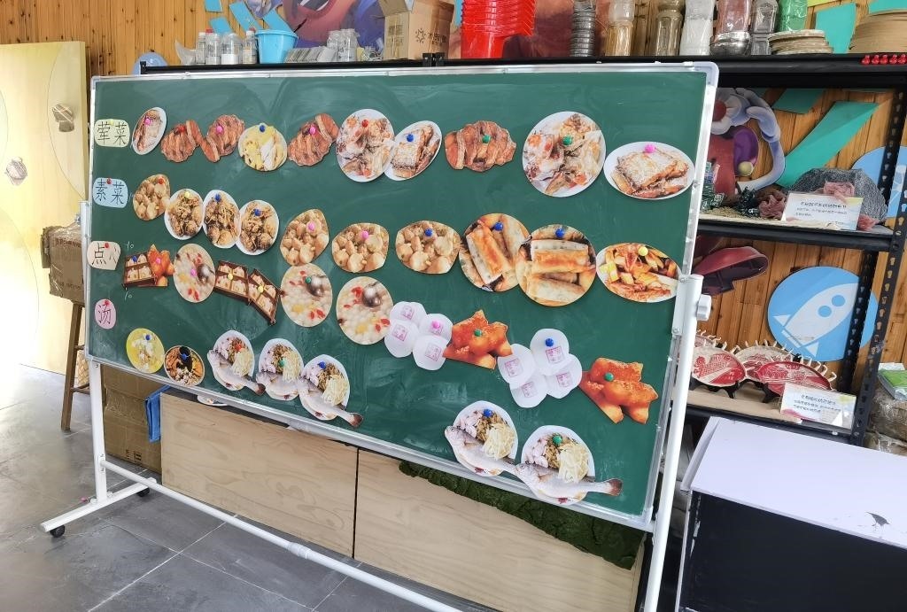 在教室內(nèi)另一張小桌上,擺放著小蔥、馬鈴薯、竹筍等各類農(nóng)產(chǎn)品實(shí)物。一位教師問學(xué)生,“你知道哪個是竹筍嗎?竹筍一般種在哪里?”
