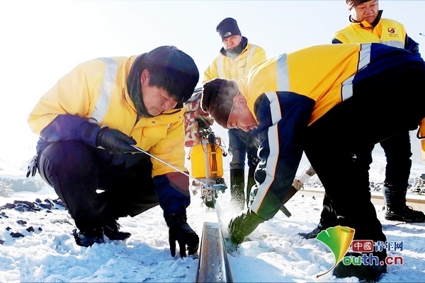 2月5日6點(diǎn)30分,宮偉輝緊了緊衣領(lǐng),踏著腳下嘎嘎作響的積雪,冒著零下30度的嚴(yán)寒,提前來到單位檢查探傷儀。這樣,他可以為工友節(jié)約半小時的機(jī)具準(zhǔn)備時間。