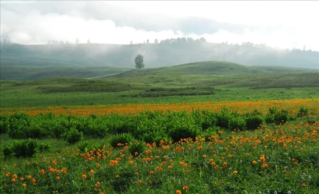 相比于我國東部地區(qū),喀納斯的春天總是姍姍來遲。當(dāng)天氣轉(zhuǎn)暖,河谷漸漸從冬眠中蘇醒,由銀白變成滿目的嫩綠,競相開放的山花也爬上山坡,吐納春天的氣息。