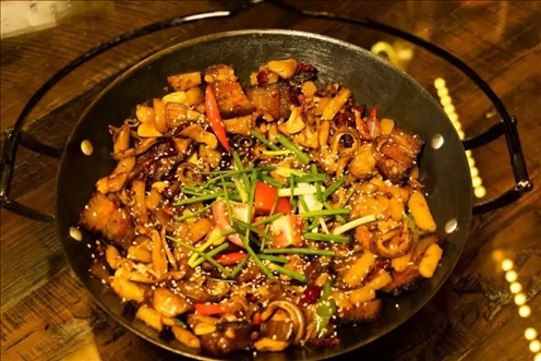 到了張家界,“三下鍋”不得不嘗。“三下鍋”是指焯水、炒制、燉煮等三道工序。它將臘肉、豆腐、蘿卜等葷素食材一鍋燉,味道香濃,是土家族的傳統(tǒng)菜肴之一。