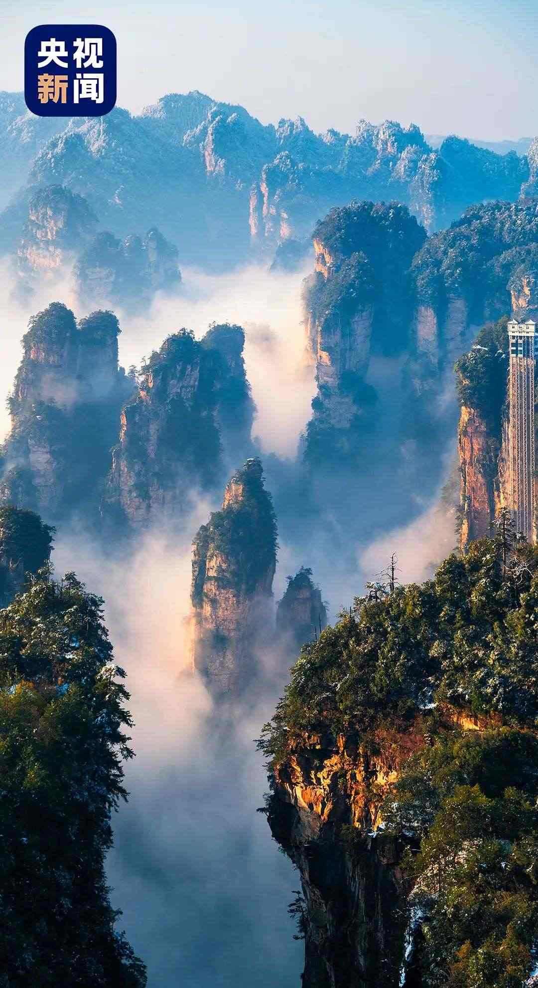 “三千奇峰,八百秀水?!睆埣医鐕疑止珗@是中國第一個(gè)國家森林公園,久負(fù)盛名,是世界自然遺產(chǎn),世界地質(zhì)公園。這里3103座形態(tài)各異的峰柱、峰叢、峰墻錯(cuò)落有致,氣勢雄壯,點(diǎn)綴其中的湖泊、泉水、溪流,又為它增添了幾分清秀。