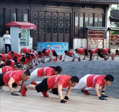 健身團(tuán)成員在做“鱷魚爬”。 ? 受訪者供圖