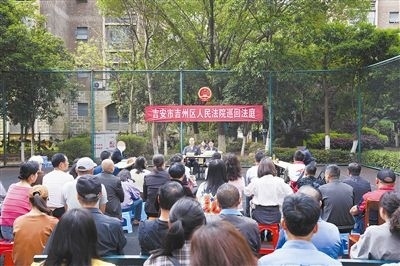 近日,江西省吉安市吉州區(qū)人民法院民事庭將巡回法庭搬進(jìn)了桃源盛景小區(qū),對(duì)三起物業(yè)服務(wù)合同糾紛案進(jìn)行了公開(kāi)審理,并邀請(qǐng)社區(qū)代表、小區(qū)部分業(yè)主旁聽(tīng)。巡回法庭采取了“庭審+普法”的形式以案釋法,引導(dǎo)業(yè)主合理維權(quán),倡導(dǎo)物業(yè)公司積極履行合同義務(wù),取得了良好的效果。圖為巡回審理現(xiàn)場(chǎng)。