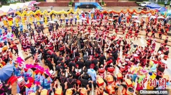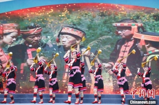 開幕式上,當(dāng)?shù)噩幾迕癖娨愿挥忻褡逄厣母栉?、瑤服服飾走秀等表演迎接來自四面八方的賓客。