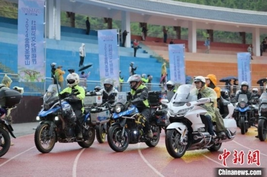 隨后,“5·17”騎行季活動(dòng)將現(xiàn)場氣氛推向高潮。伴隨著發(fā)車儀式的號(hào)令,800余輛機(jī)車轟鳴啟動(dòng),浩浩蕩蕩的車隊(duì)自縣城體育場出發(fā)前往圣堂山。騎行者們在青山綠水間享受著騎行運(yùn)動(dòng)的樂趣,感受美麗的杜鵑花海。