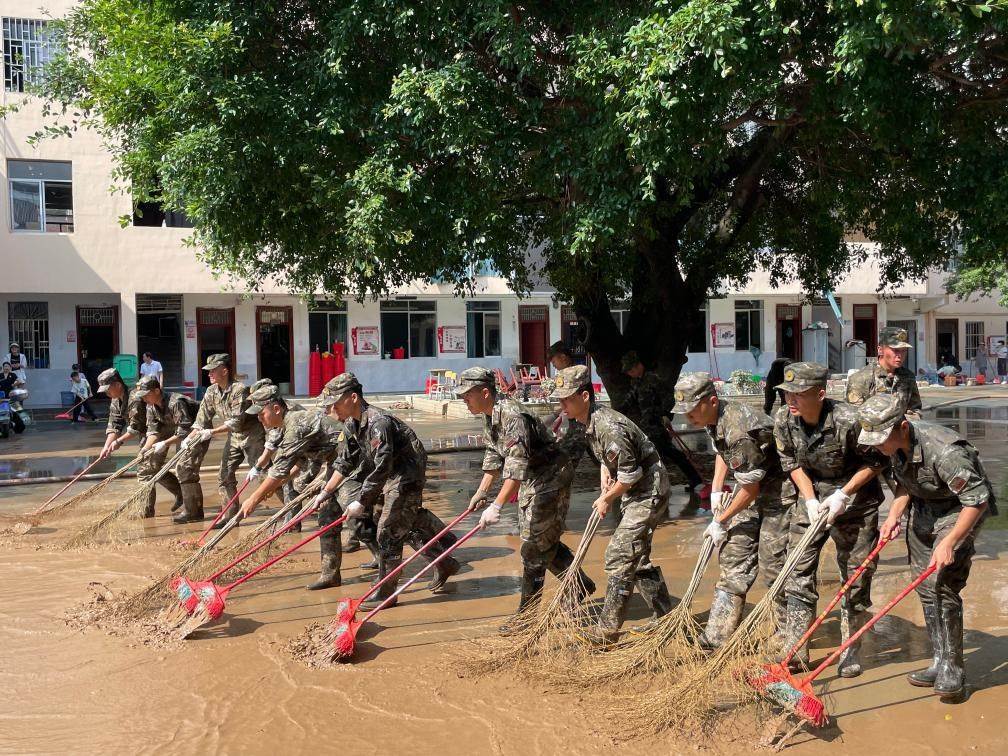 當(dāng)日9時(shí),廣西桂林水文中心解除洪水藍(lán)色預(yù)警。武警廣西總隊(duì)桂林支隊(duì)的140多名官兵分散在各個(gè)受災(zāi)點(diǎn)進(jìn)行清淤工作。在桂林市東江小學(xué),40多名武警官兵正在幫助學(xué)校清淤,周邊的家長(zhǎng)和學(xué)生也自發(fā)投入到學(xué)校的清理工作中。