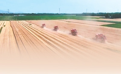 夏日的午后,陽光灑在昌黎縣安山鎮(zhèn)廣袤的麥田上,幾臺聯(lián)合收割機(jī)沿著筆直的麥浪線緩緩前進(jìn),所到之處,麥穗紛紛收割入桶,經(jīng)過內(nèi)部滾筒等設(shè)備的打碎脫粒,麥粒落入儲(chǔ)存箱……
