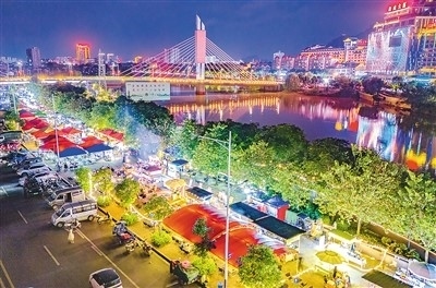近年來,廣西壯族自治區(qū)賀州市不斷豐富夜間經(jīng)濟(jì)消費業(yè)態(tài),滿足市民多樣化消費需求,助推城市經(jīng)濟(jì)煥發(fā)新活力。圖為近日,市民和游客在賀州市城區(qū)江南中路夜市休閑游玩。黎豪圖攝(人民視覺)
