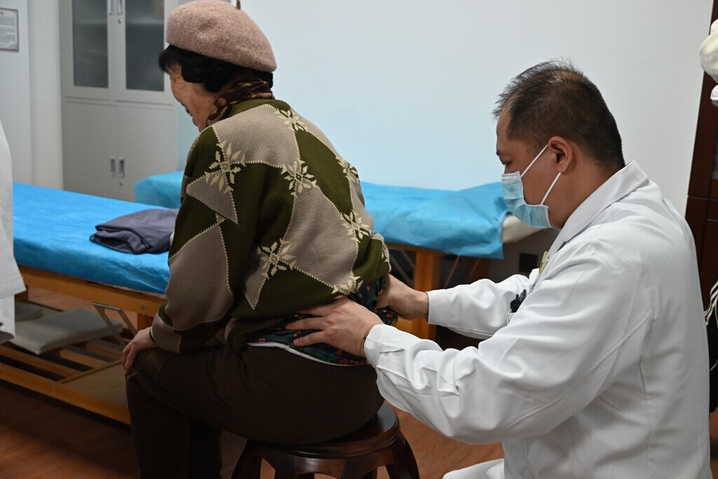 1月20日,二〇五所社區(qū)衛(wèi)生服務(wù)站中醫(yī)館針灸科主任陳輝為居民伍麗(化名)按摩。林敬 攝