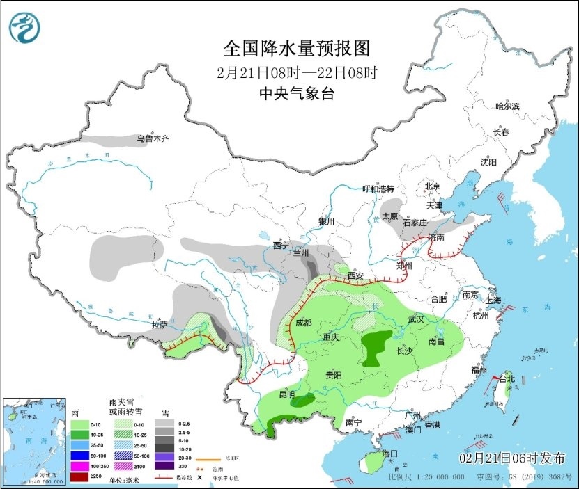 人民網(wǎng)北京2月21日電 (溫璐、高清揚)據(jù)中央氣象臺消息,昨日,降雨主要出現(xiàn)在江南地區(qū),其中湖南中南部、江西、安徽南部、浙江、福建西部和北部、廣西北部、臺灣島北部等地有中到大雨,局地暴雨。預(yù)計21日至25日,江南、華南、江漢及西南地區(qū)等地仍多陰雨天氣,北方大部地區(qū)天氣晴好,西北地區(qū)東南部、華北南部、東北地區(qū)東北部等地有弱降雪。