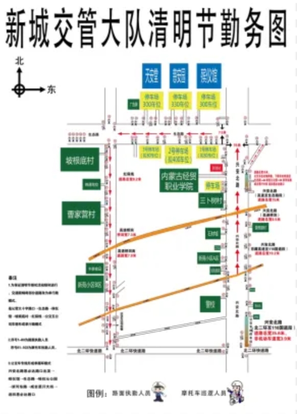 清明節(jié)假期新城區(qū)紅保線將實(shí)行單向通行。4 月 4 日至 4 月 6 日每日 6 點(diǎn)-14 點(diǎn)紅保線將實(shí)行單向通行,祭掃市民可從呼哈線紅保線交匯處經(jīng)過(guò)原呼和浩特市殯儀館、慈安園 、天安堂至坡根底村處向南行駛可返回市區(qū),Y371(省道104至野馬圖路)調(diào)整為單行,只能由西向東行駛。同時(shí)建議市民盡量選擇公交車(chē)等綠色出行方式,乘坐公交車(chē)36路58路在國(guó)家北方足球訓(xùn)練基地下車(chē)即可。