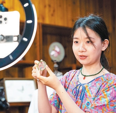桃源刺繡非物質文化遺產代表性傳承人肖瑤在直播。