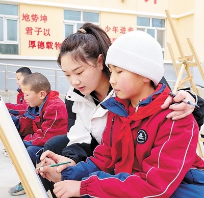 2023年,高潮從山西大同大學(xué)美術(shù)學(xué)院畢業(yè)前,看到了西部計(jì)劃的招募信息?!耙ツ敲催h(yuǎn)的地方當(dāng)老師嗎?”高潮有點(diǎn)猶豫。她小時(shí)候在鄉(xiāng)村小學(xué)讀書,因?yàn)槔蠋熒?,很多課程都開展不起來,“想到自己小時(shí)候的經(jīng)歷,我下定了決心?!?/p>