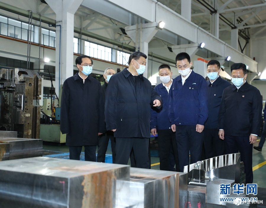 3月29日至4月1日,中共中央總書記、國(guó)家主席、中央軍委主席習(xí)近平在浙江考察。這是3月29日,習(xí)近平在寧波北侖大碶高端汽配模具園區(qū)考察中小型民營(yíng)制造業(yè)企業(yè)寧波臻至機(jī)械模具有限公司,聽(tīng)取企業(yè)生產(chǎn)經(jīng)營(yíng)及復(fù)工復(fù)產(chǎn)情況介紹。 新華社記者 鞠鵬 攝