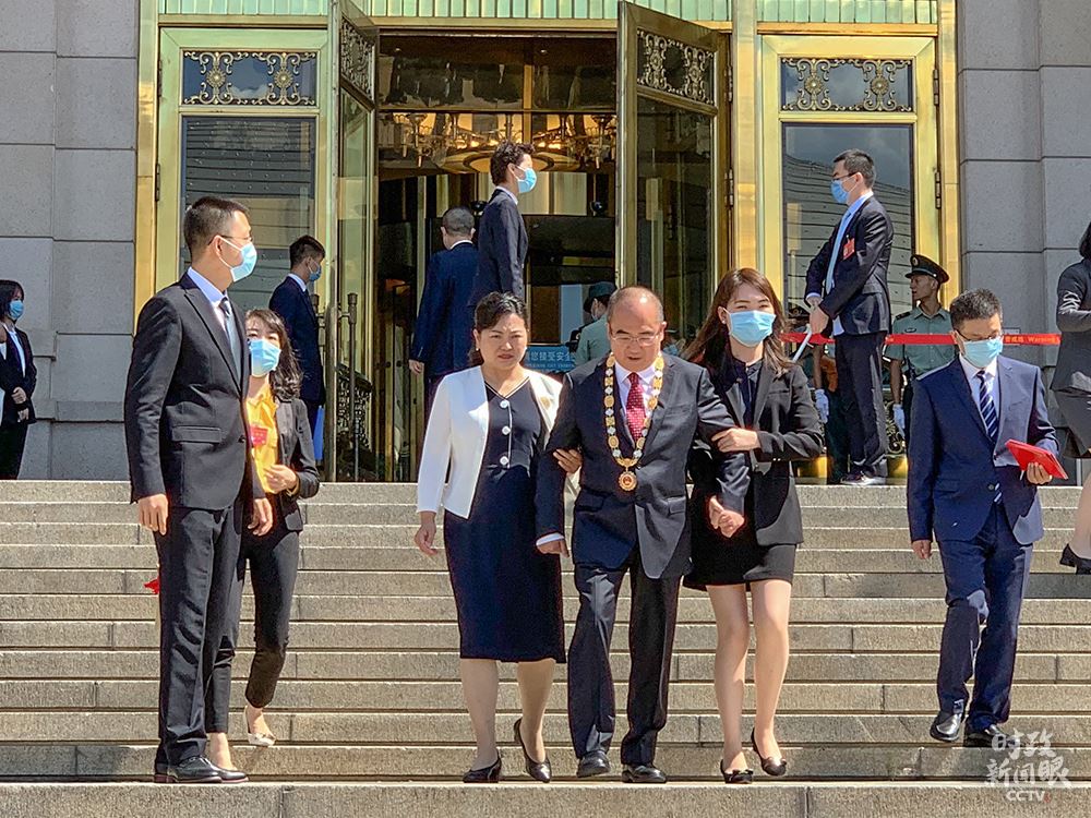 變化二:獲獎(jiǎng)?wù)咦搅酥飨_(tái)。今年,4位國(guó)家勛章和國(guó)家榮譽(yù)稱號(hào)獲得者在被頒授勛章獎(jiǎng)?wù)潞?,受邀到主席臺(tái)就座。