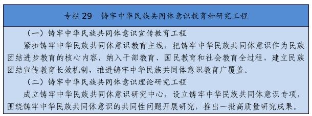 在全社會(huì)樹立和突出各民族共享的具有鮮明中華文化特征的文化符號(hào)和中華民族視覺形象,打造中國標(biāo)志。堅(jiān)定不移推廣普及國家通用語言文字,全面加強(qiáng)國家通用語言文字教育教學(xué),積極穩(wěn)妥推行國家統(tǒng)編教材使用,深化雙語教學(xué)模式改革,確保少數(shù)民族學(xué)生掌握和使用國家通用語言文字。尊重、支持各少數(shù)民族語言文字的學(xué)習(xí)和使用。堅(jiān)持以社會(huì)主義先進(jìn)文化為引領(lǐng),促進(jìn)各民族文化交融、創(chuàng)新。提倡文明現(xiàn)代的生活方式,引導(dǎo)和幫助各族群眾追求現(xiàn)代文明生活,推進(jìn)民族進(jìn)步。強(qiáng)化全體公民日常行為規(guī)范,完善市民公約、鄉(xiāng)規(guī)民約、學(xué)生守則、行業(yè)規(guī)章、職業(yè)規(guī)則、團(tuán)體章程,營造自覺遵法守法、尊重少數(shù)民族風(fēng)俗習(xí)慣和宗教信仰、維護(hù)民族團(tuán)結(jié)的社會(huì)氛圍。著力開展興邊富民行動(dòng),打牢守邊固邊的民族團(tuán)結(jié)基礎(chǔ)。