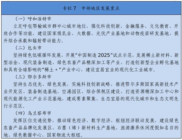 經(jīng)濟(jì)發(fā)展基礎(chǔ)更加穩(wěn)固。地區(qū)生產(chǎn)總值年均增長4.3%,人均地區(qū)生產(chǎn)總值突破1萬美元,常住人口城鎮(zhèn)化率達(dá)到64.1%。能源和戰(zhàn)略資源基地得到提升,煤炭產(chǎn)能、外運(yùn)量、發(fā)電量和外送電量均居全國首位,可再生能源裝機(jī)占比達(dá)到36.1%,稀土原材料就地轉(zhuǎn)化率達(dá)到75%,稀土功能材料及終端應(yīng)用產(chǎn)品占比達(dá)到53.6%。農(nóng)畜產(chǎn)品生產(chǎn)基地更加鞏固,糧食和畜牧生產(chǎn)連豐連穩(wěn),農(nóng)畜產(chǎn)品加工轉(zhuǎn)化率達(dá)到65%,形成2個(gè)千億級(jí)、9個(gè)百億級(jí)農(nóng)牧業(yè)主導(dǎo)產(chǎn)業(yè)。數(shù)字經(jīng)濟(jì)、會(huì)展經(jīng)濟(jì)、商貿(mào)物流、現(xiàn)代金融等加快發(fā)展。
