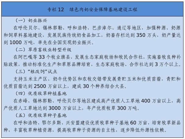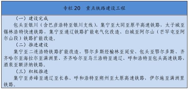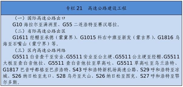 基礎(chǔ)設(shè)施保障更加有力。交通運(yùn)輸、能源外送通道和引調(diào)水骨干工程接續(xù)落地。綜合交通運(yùn)輸體系基本形成,接入全國高鐵網(wǎng),呼和浩特至張家口高速鐵路,通遼、赤峰至京沈高速鐵路連接線,浩勒?qǐng)?bào)吉至吉安鐵路順利建成,建成高速鐵路404公里。全區(qū)103個(gè)旗縣(市區(qū))全部通高等級(jí)公路,京新高速臨河至哈密、丹錫高速錫林浩特至巴林右旗等高速公路通車運(yùn)營,所有鄉(xiāng)鎮(zhèn)(蘇木)和具備條件的建制村通硬化路,建成“四好農(nóng)村路”6.6萬公里,綜合交通網(wǎng)總里程達(dá)到22.5萬公里。呼和浩特新機(jī)場開工建設(shè),呼倫貝爾、包頭、通遼等機(jī)場完成改擴(kuò)建。新建通用機(jī)場15個(gè),民用機(jī)場達(dá)到40個(gè)。黃河內(nèi)蒙古段二期防洪、引綽濟(jì)遼、東臺(tái)子水庫等重大水利工程建設(shè)順利推進(jìn)。全區(qū)5G基站突破1萬個(gè)。建成5條特高壓外送電通道。克什克騰至北京煤制氣管道投入運(yùn)營。呼和浩特地鐵1、2號(hào)線一期工程建成運(yùn)營。