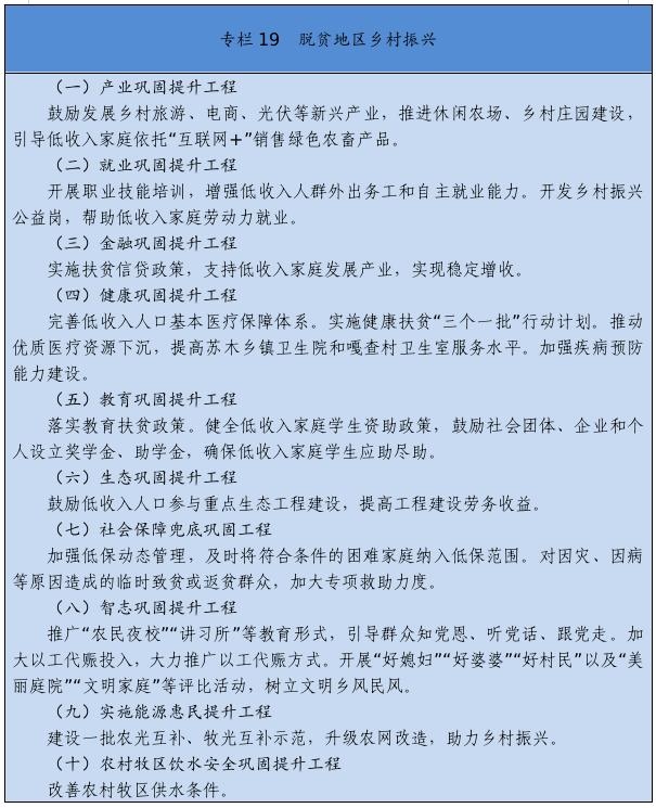 ——民生福祉達(dá)到更高水平。城鄉(xiāng)居民收入增長和經(jīng)濟(jì)增長基本同步,分配結(jié)構(gòu)明顯改善,統(tǒng)籌城鄉(xiāng)的基本公共服務(wù)實(shí)施標(biāo)準(zhǔn)進(jìn)一步完善,基本公共服務(wù)更加優(yōu)質(zhì)均衡,就業(yè)更加充分更有質(zhì)量,教育現(xiàn)代化水平明顯提升,社會(huì)保障、養(yǎng)老服務(wù)、衛(wèi)生健康體系更加健全完善,脫貧攻堅(jiān)成果鞏固拓展,鄉(xiāng)村振興戰(zhàn)略全面推進(jìn),人民對(duì)美好生活的向往得到更好滿足。