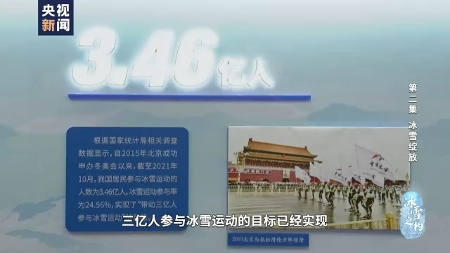 冰雪之約,中國之諾。八年前,中國許下了“三億人參與冰雪”的承諾;八年后,承諾已經(jīng)變?yōu)樯鷦?dòng)的現(xiàn)實(shí),中國冰雪運(yùn)動(dòng)大潮奔涌。大江南北,雪橇劃過;長城內(nèi)外,冰刀飛舞;大河上下,雪車轟鳴。
