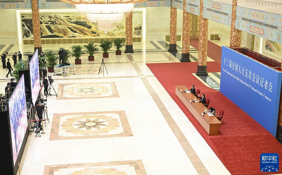 記者會采用網(wǎng)絡視頻形式進行,主會場設在人民大會堂三樓金色大廳,分會場設在梅地亞兩會新聞中心。記者會歷時約130分鐘。