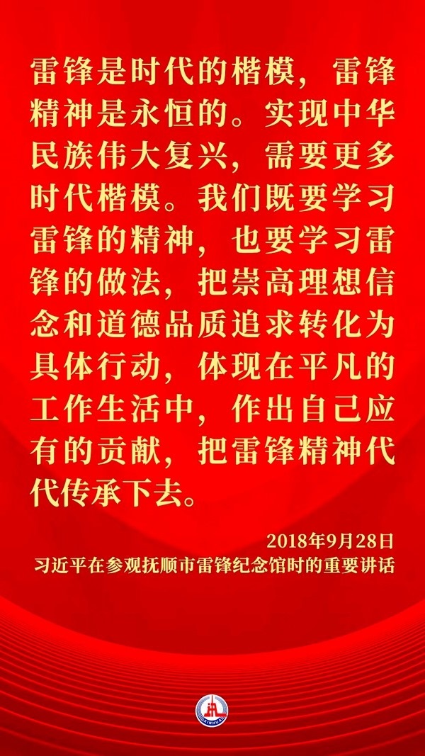 習近平總書記強調(diào),“新征程上,要深刻把握雷鋒精神的時代內(nèi)涵”“讓雷鋒精神在新時代綻放更加璀璨的光芒,為全面建設(shè)社會主義現(xiàn)代化國家、全面推進中華民族偉大復興凝聚強大力量”。