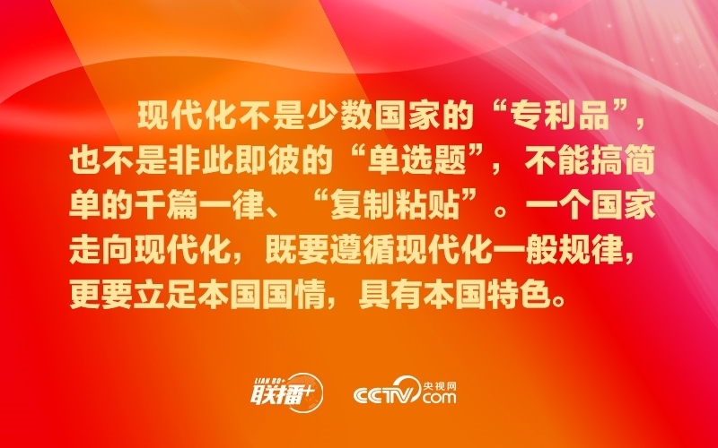 要堅持共享機遇、共創(chuàng)未來,共同做大人類社會現(xiàn)代化的“蛋糕”,努力讓現(xiàn)代化成果更多更公平惠及各國人民,堅決反對通過打壓遏制別國現(xiàn)代化來維護自身發(fā)展“特權”。