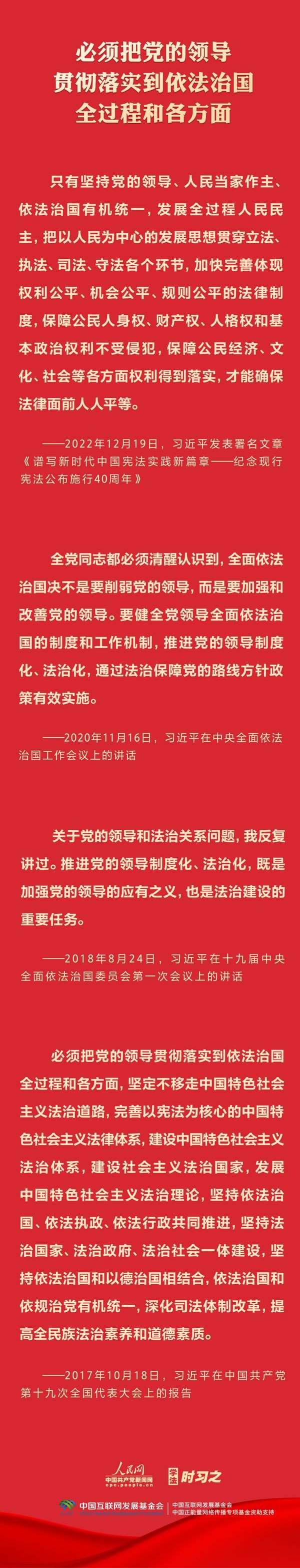 今年是貫徹落實黨的二十大精神的開局之年。中共中央政治局決定從今年4月開始,在全黨自上而下開展學習貫徹習近平新時代中國特色社會主義思想主題教育。習近平法治思想是習近平新時代中國特色社會主義思想的重要組成部分,人民網(wǎng)·中國共產(chǎn)黨新聞網(wǎng)推出學法時習之·學習習近平法治思想系列策劃,本篇聚焦“堅持黨對全面依法治國的領導”。