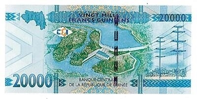 △在幾內亞央行發(fā)行的該國最大面值兩萬幾郎紙幣上,印著中國長江三峽集團有限公司總承建的凱樂塔水電站。