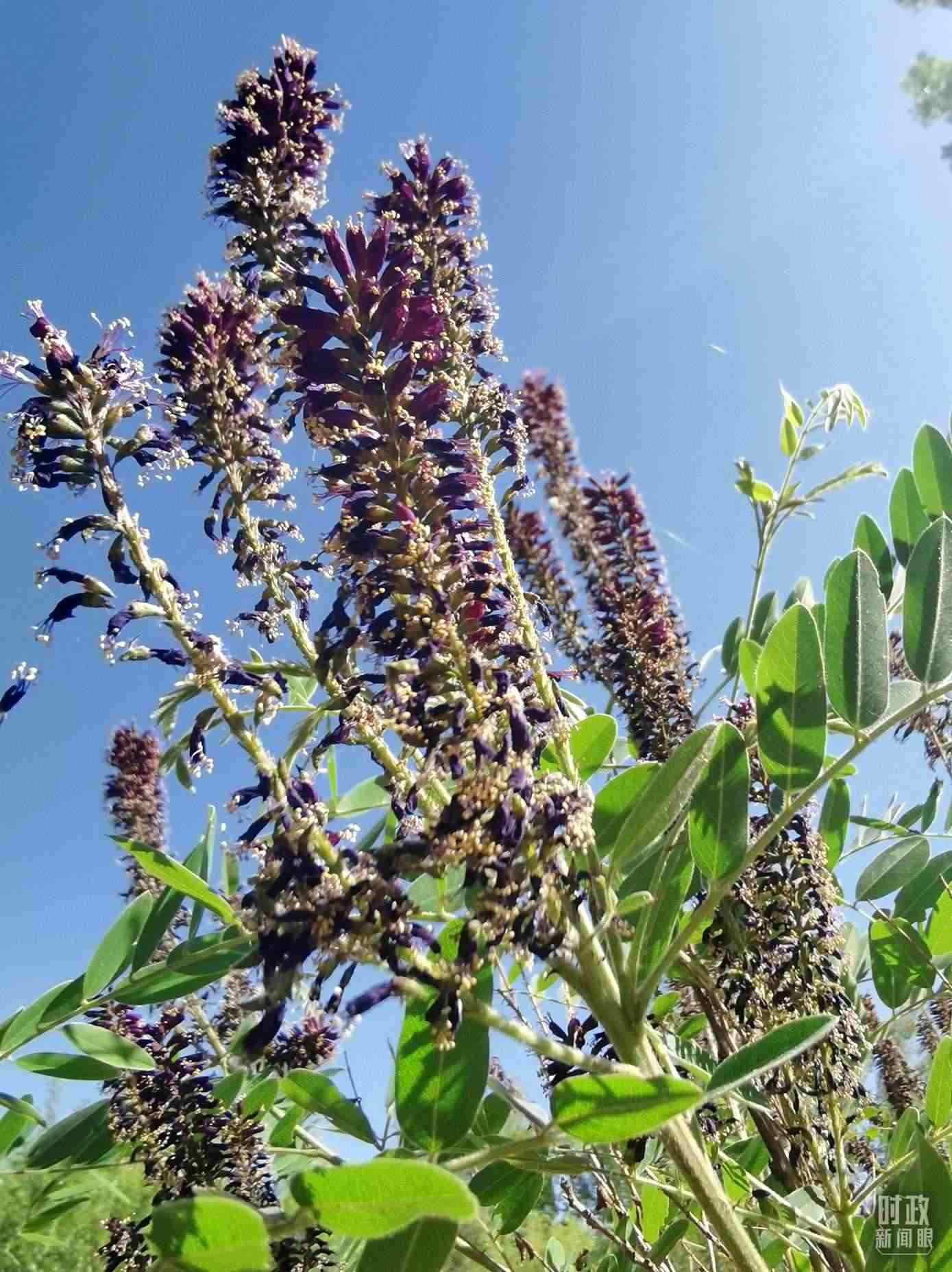 △新華林場內(nèi)種植的紫穗槐。(總臺央視記者楊波拍攝)