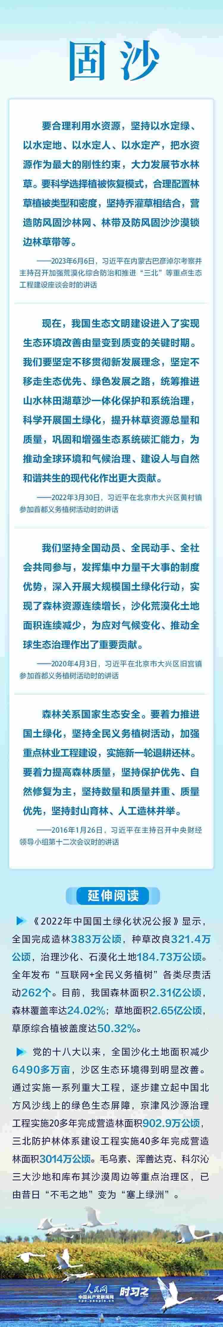 長(zhǎng)期以來(lái),在習(xí)近平生態(tài)文明思想的指引下,我國(guó)堅(jiān)持走綠色發(fā)展之路,堅(jiān)持科學(xué)防沙治沙,創(chuàng)造了“綠色奇跡”。