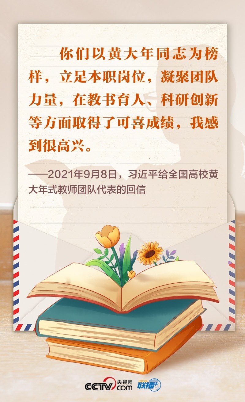 2021年,首批黃大年式教師團隊的代表給總書記寫信,匯報教學(xué)、科研等工作情況,表達了堅守教育報國理想、為民族復(fù)興貢獻力量的決心。總書記回信肯定了大家的工作成效,勉勵大家繼續(xù)學(xué)習(xí)弘揚黃大年同志等優(yōu)秀教師的高尚精神,立德修身,潛心治學(xué),開拓創(chuàng)新,真正把為學(xué)、為事、為人統(tǒng)一起來,當好學(xué)生成長的引路人。