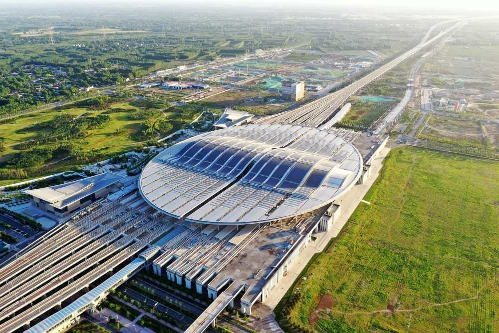這是雄安站(6月2日攝,無人機照片)。雄安站位于雄安新區(qū)昝崗片區(qū),是雄安新區(qū)開工建設(shè)的第一個重大基礎(chǔ)設(shè)施項目,具有標志性意義。新華社記者 朱旭東 攝