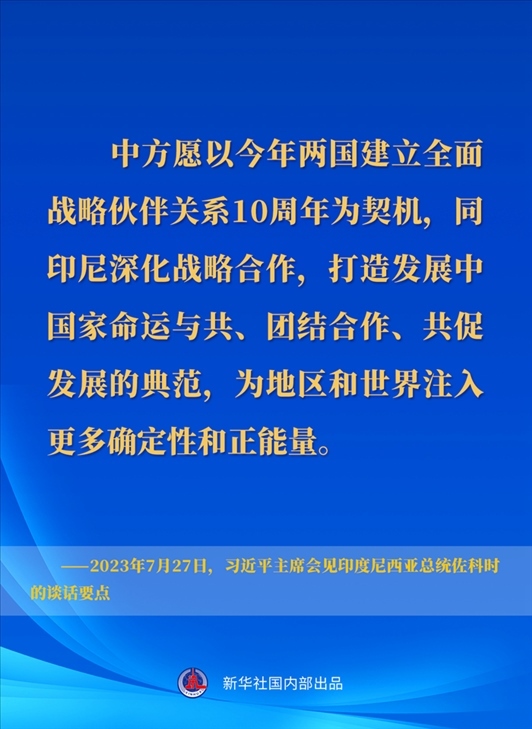 7月27日下午,國家主席習(xí)近平在成都會(huì)見來華出席第31屆世界大學(xué)生夏季運(yùn)動(dòng)會(huì)開幕式并訪華的印度尼西亞總統(tǒng)佐科。一起來看習(xí)近平主席在會(huì)見時(shí)的談話要點(diǎn)↓