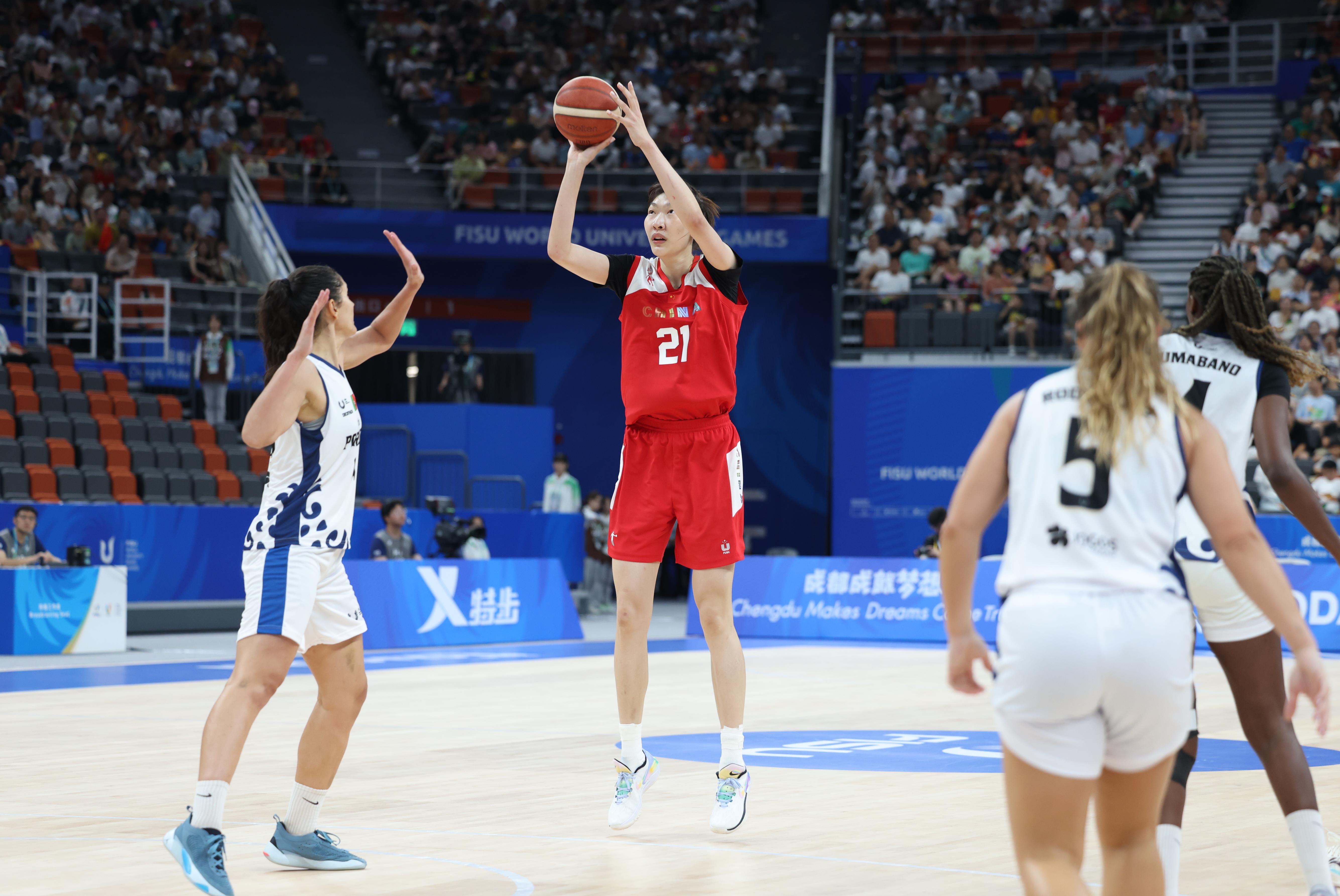 △2023年7月28日,在成都大運(yùn)會(huì)女籃小組賽中,中國大學(xué)生女籃戰(zhàn)勝葡萄牙大學(xué)生女籃。