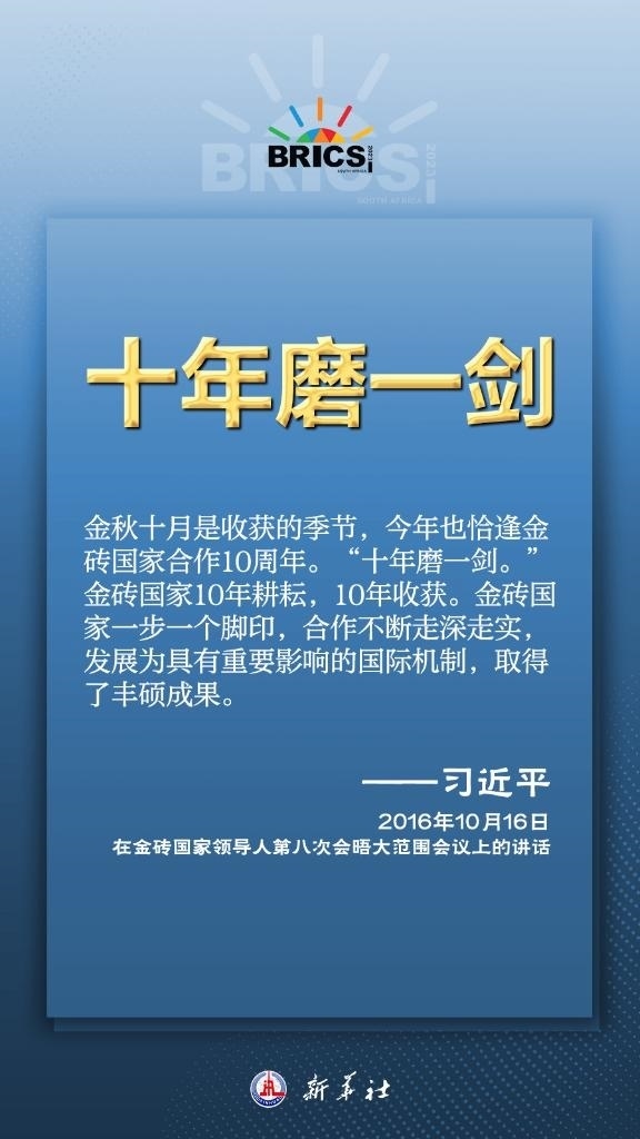 應(yīng)南非共和國總統(tǒng)拉馬福薩邀請,國家主席習(xí)近平將于8月21日至24日出席在南非約翰內(nèi)斯堡舉行的金磚國家領(lǐng)導(dǎo)人第十五次會(huì)晤并對南非進(jìn)行國事訪問。在南非期間,習(xí)近平還將同拉馬福薩共同主持中非領(lǐng)導(dǎo)人對話會(huì)。過去十年來,習(xí)近平主席出席了全部十次金磚國家領(lǐng)導(dǎo)人會(huì)晤并發(fā)表一系列重要講話,為推動(dòng)金磚國家合作行穩(wěn)致遠(yuǎn)提供中國智慧、注入強(qiáng)勁動(dòng)力。