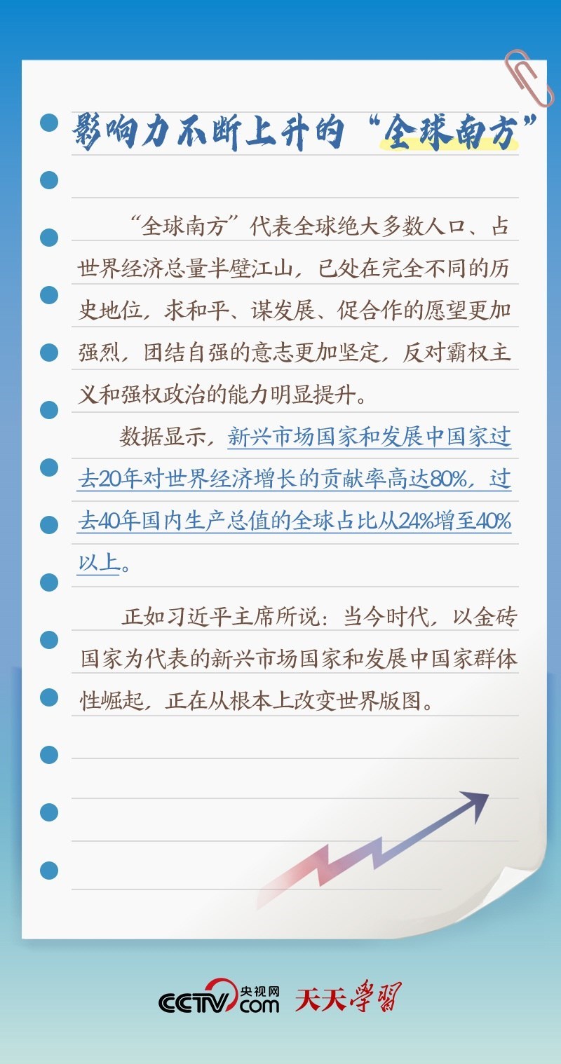 此次出訪,習近平主席在向約翰內(nèi)斯堡金磚國家工商論壇閉幕式發(fā)表致辭、同南非總統(tǒng)拉馬福薩共同會見記者等場合均提及“全球南方”。什么是“全球南方”?“全球南方”國家有何共性?中國為何是“全球南方”的天然成員?跟著央視網(wǎng)《天天學習》一起了解。
