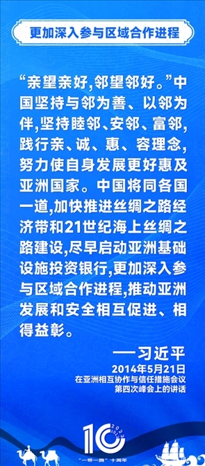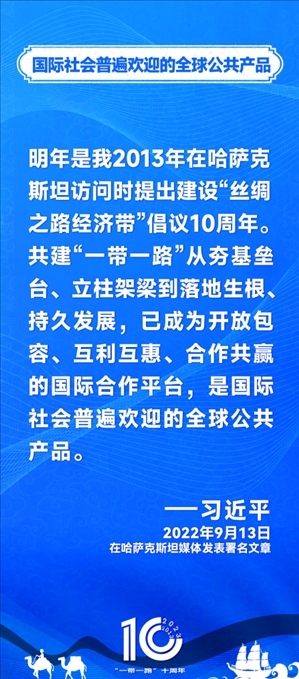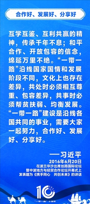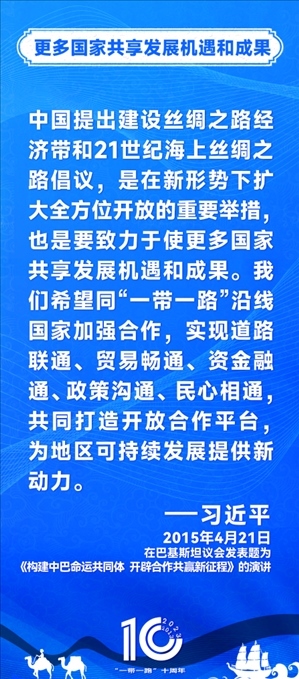 10年前,習近平主席提出共建“絲綢之路經(jīng)濟帶”和“21世紀海上絲綢之路”,即共建“一帶一路”倡議。過去10年來,習近平主席在多個場合發(fā)表講話和署名文章,為世界描繪了共建“一帶一路”互聯(lián)互通、合作共贏的宏偉藍圖。