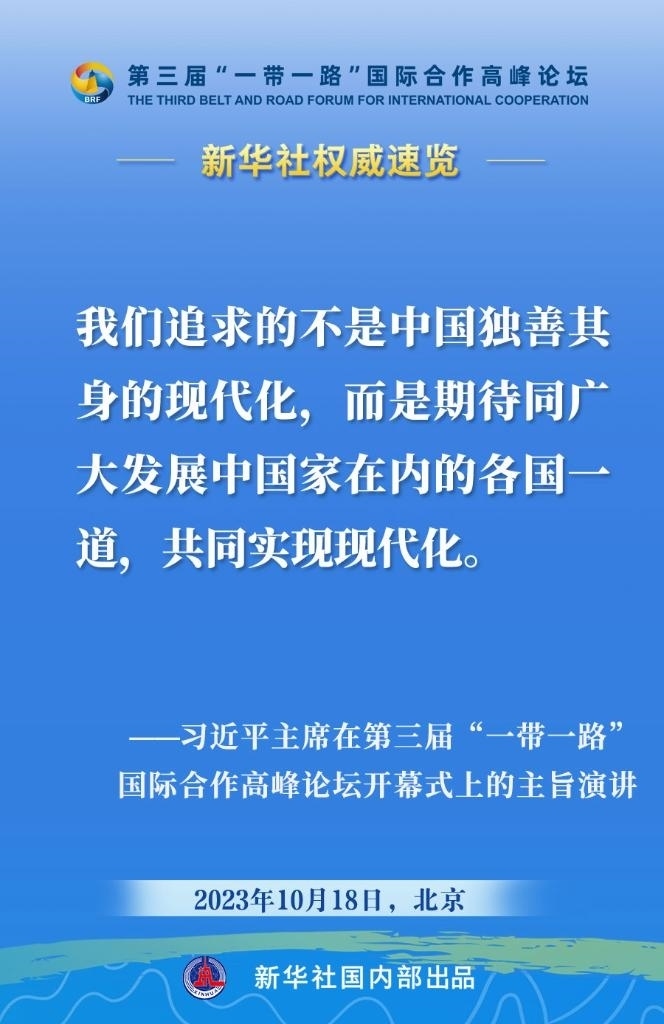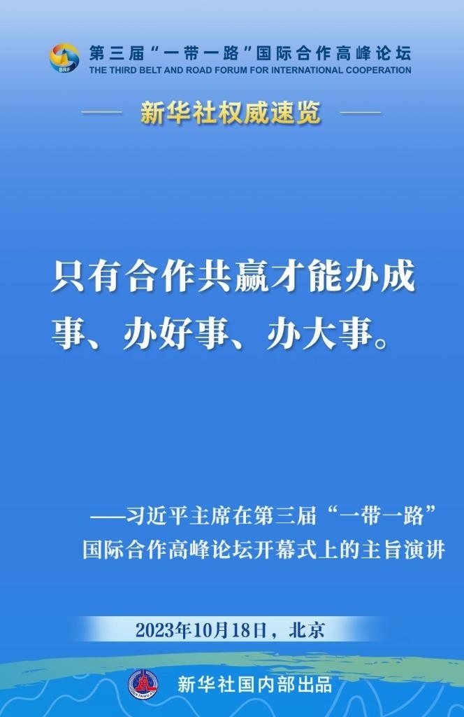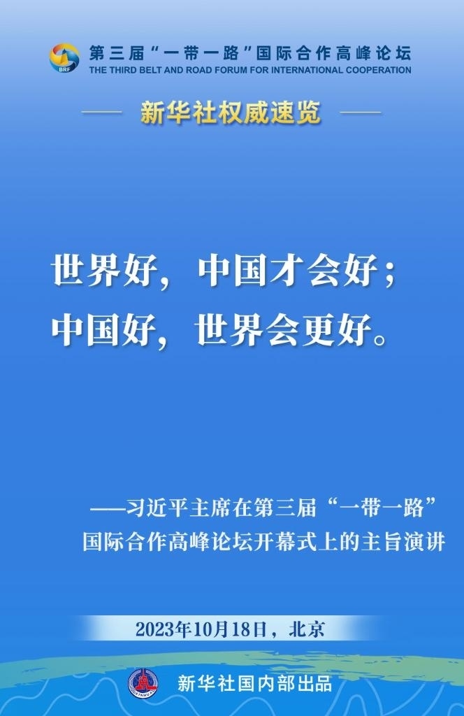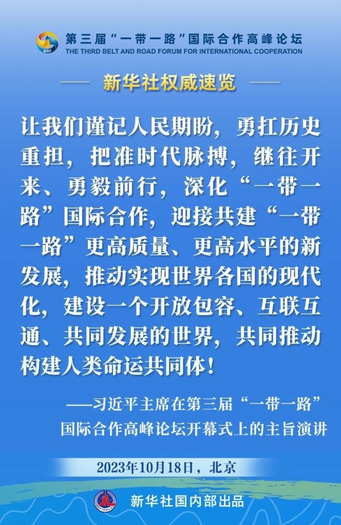 10月18日,國家主席習(xí)近平在第三屆“一帶一路”國際合作高峰論壇開幕式上發(fā)表主旨演講。一起來看金句。