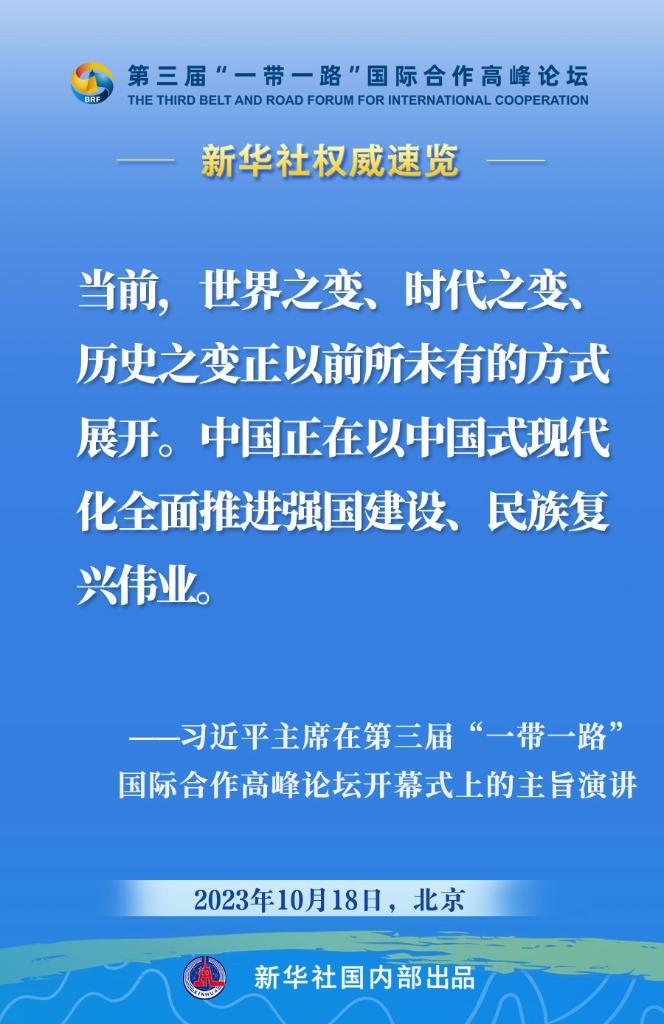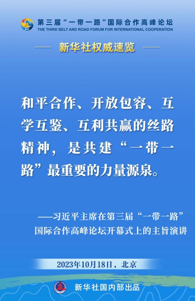 10月18日,國家主席習(xí)近平在第三屆“一帶一路”國際合作高峰論壇開幕式上發(fā)表主旨演講。一起來看金句?! ?/p>