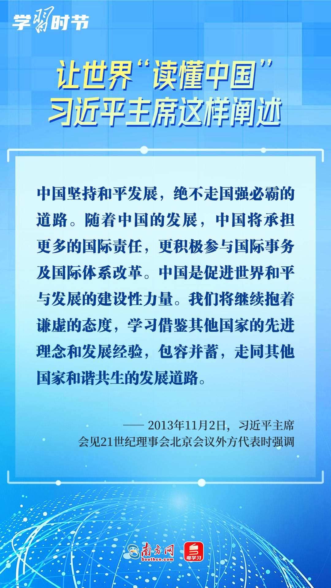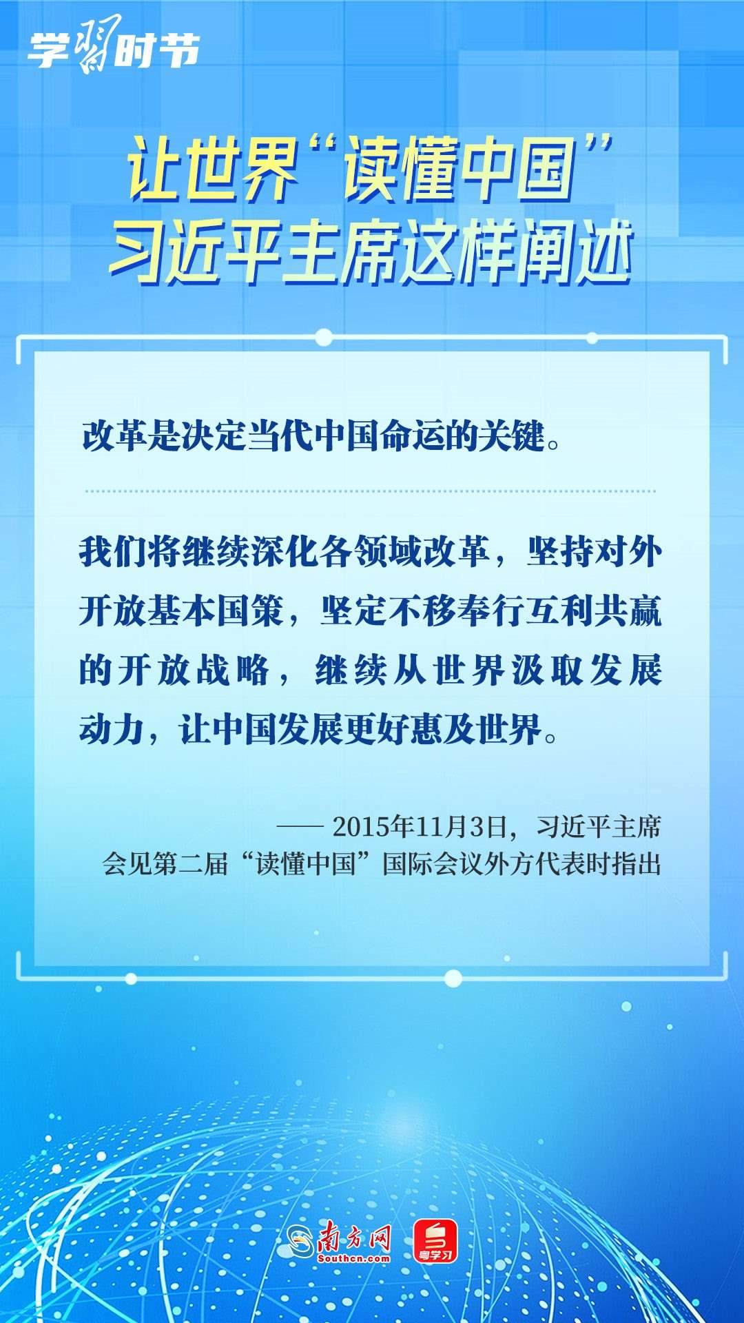 習(xí)近平主席高度重視“讀懂中國”國際會(huì)議,多次會(huì)見與會(huì)代表、向會(huì)議致辭或致賀信,闡述中國的發(fā)展道路、改革開放、對(duì)外政策等,讓我們一同學(xué)習(xí)。