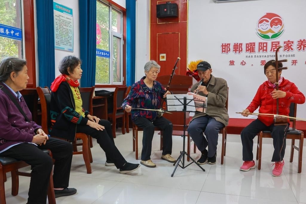 圖為河北省邯鄲市邯山區(qū)曜陽養(yǎng)老服務(wù)中心內(nèi),老人在學(xué)習(xí)樂器演奏。新華社記者趙鴻宇 攝
