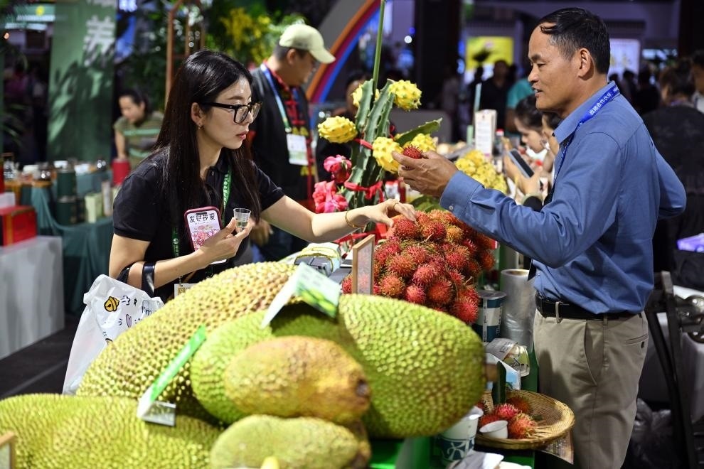2023年12月14日,第26屆中國(海南)國際熱帶農(nóng)產(chǎn)品冬季交易會展出的熱帶水果。新華社記者郭程 攝