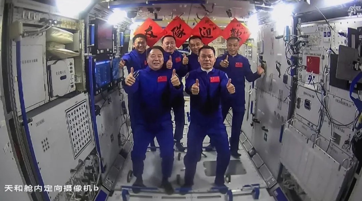 如今,中國空間站進入應(yīng)用與發(fā)展階段。2023年12月31日晚,神舟十七號航天員湯洪波、唐勝杰、江新林在中國空間站收看習(xí)主席新年賀詞,三名航天員表示,要以自強不息的精神奮力攀登,把中國人的“太空家園”維護好、建設(shè)好。