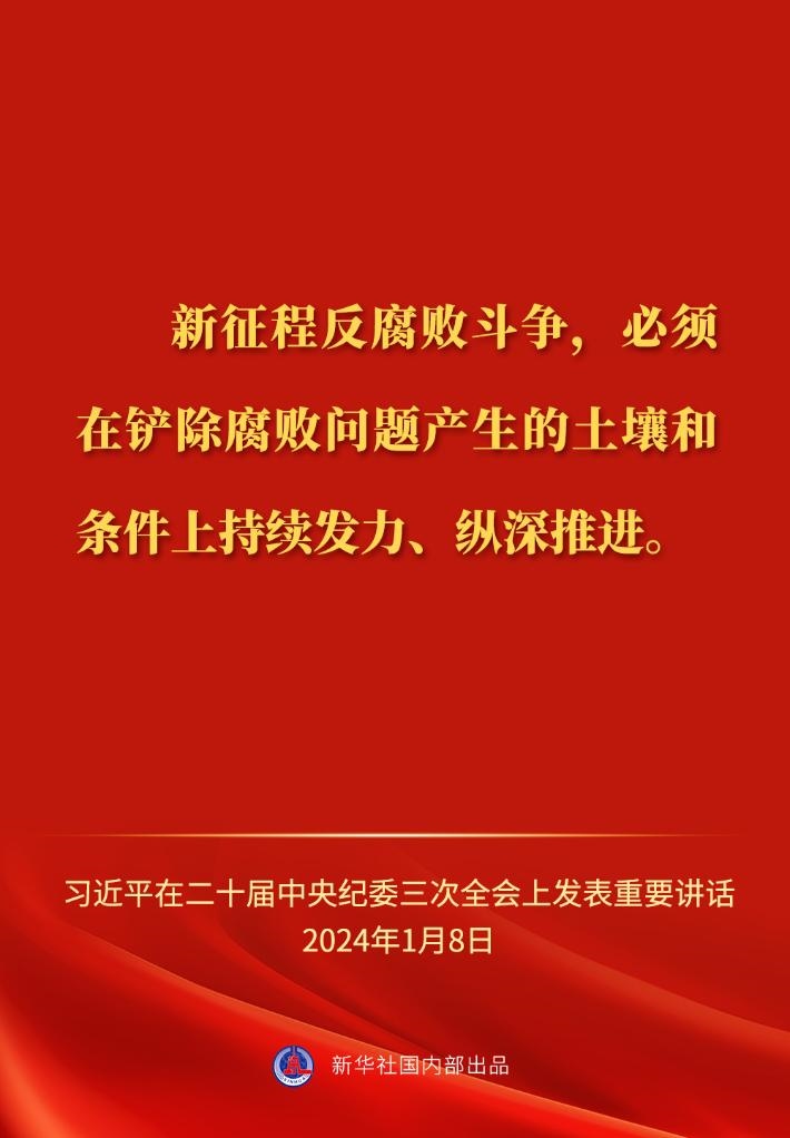 ??中共中央總書記、國家主席、中央軍委主席習(xí)近平8日上午在中國共產(chǎn)黨第二十屆中央紀(jì)律檢查委員會(huì)第三次全體會(huì)議上發(fā)表重要講話,一起來看金句。