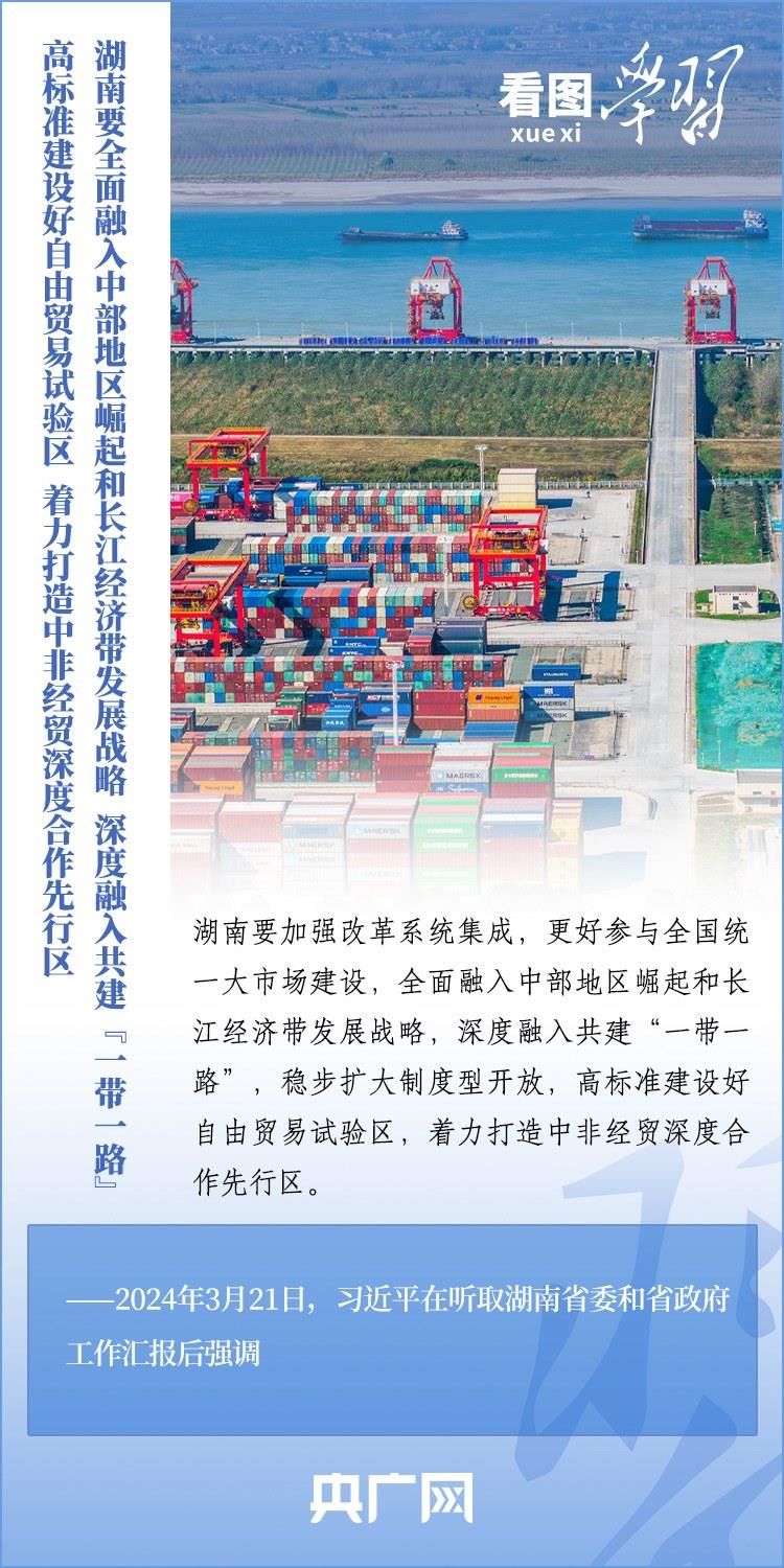 3月18日至21日,習(xí)近平總書記考察湖南長沙、常德等地,深入學(xué)校、企業(yè)、歷史文化街區(qū)、鄉(xiāng)村等進(jìn)行調(diào)研。總書記強調(diào),湖南要牢牢把握自身在構(gòu)建新發(fā)展格局中的戰(zhàn)略定位,堅持穩(wěn)中求進(jìn)工作總基調(diào),堅持高質(zhì)量發(fā)展不動搖,堅持改革創(chuàng)新、求真務(wù)實,在打造國家重要先進(jìn)制造業(yè)高地、具有核心競爭力的科技創(chuàng)新高地、內(nèi)陸地區(qū)改革開放高地上持續(xù)用力,在推動中部地區(qū)崛起和長江經(jīng)濟(jì)帶發(fā)展中奮勇爭先,奮力譜寫中國式現(xiàn)代化湖南篇章。一起來學(xué)習(xí)!