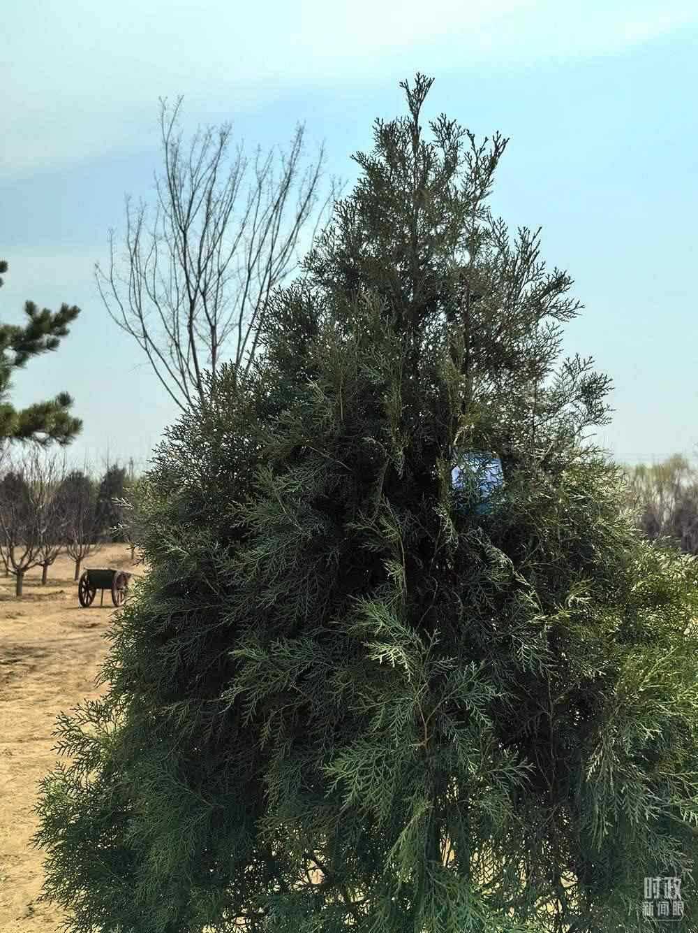△這是習近平種下的側(cè)柏樹苗。(總臺央視記者陸泓宇拍攝)